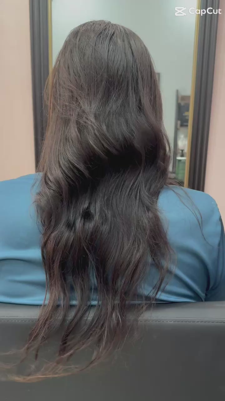 Section hair in six parts and apply Hair Texturizer strand by strand. Keep a distance of 1.5 cm / 0.6 inch from the roots.